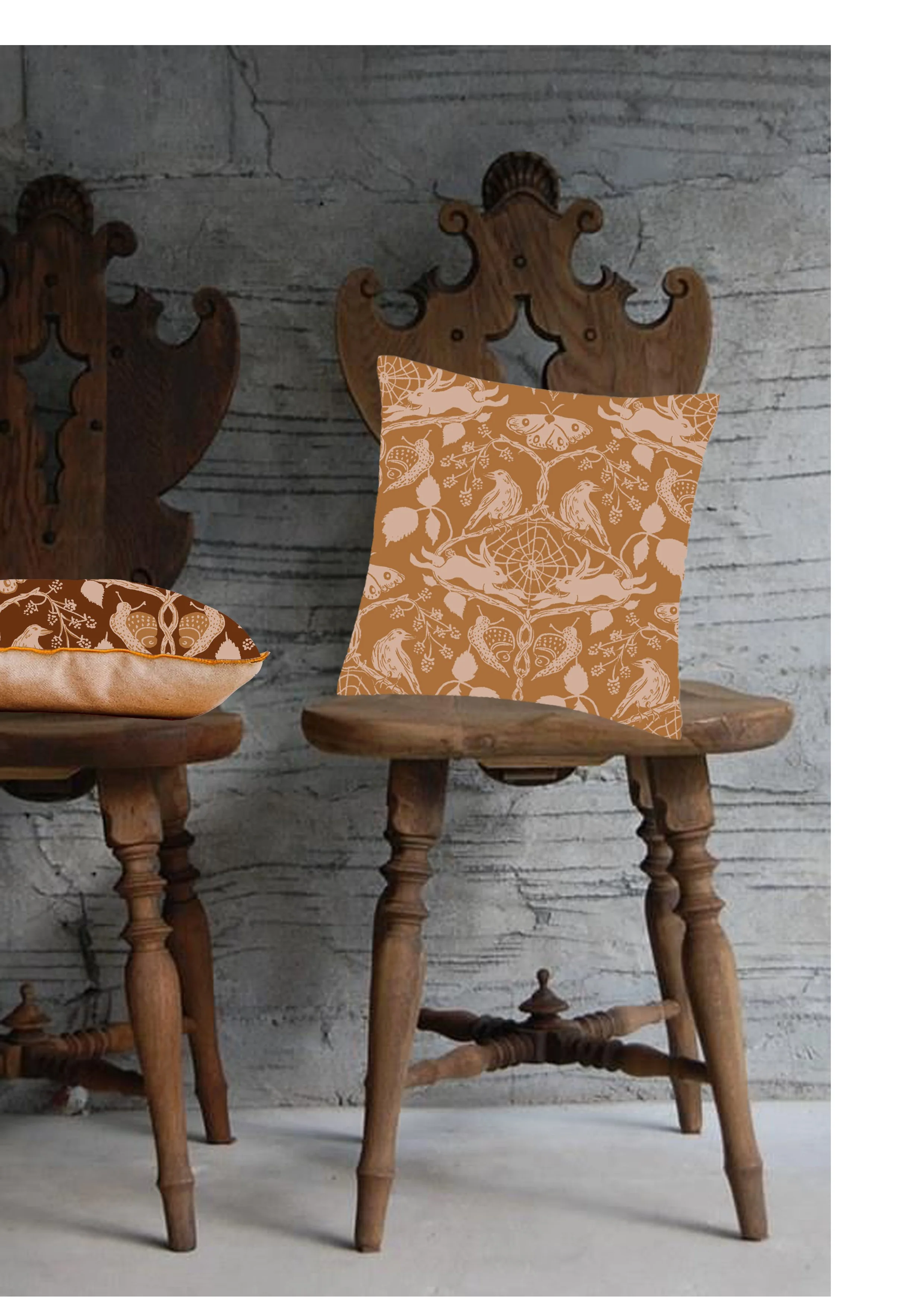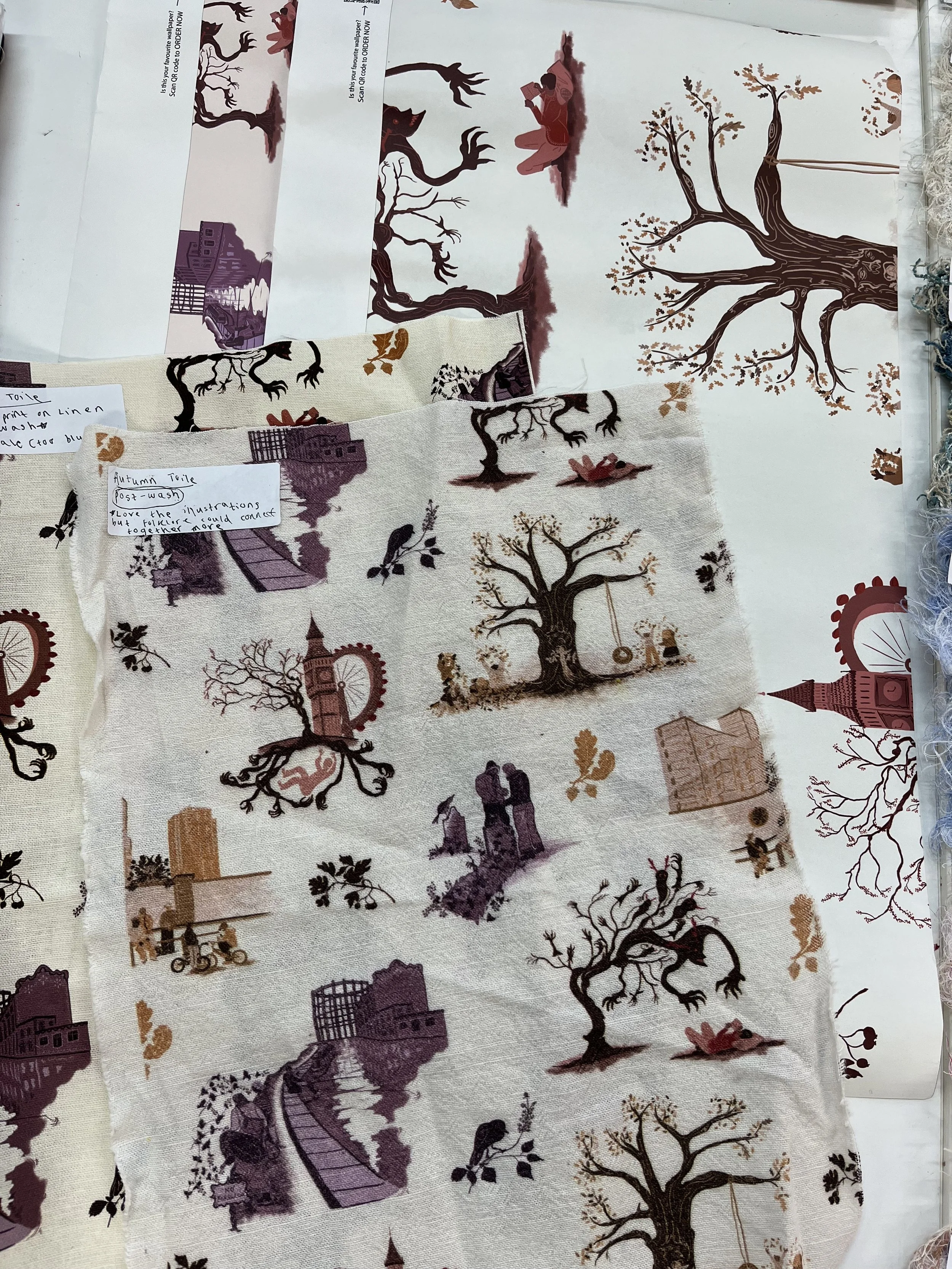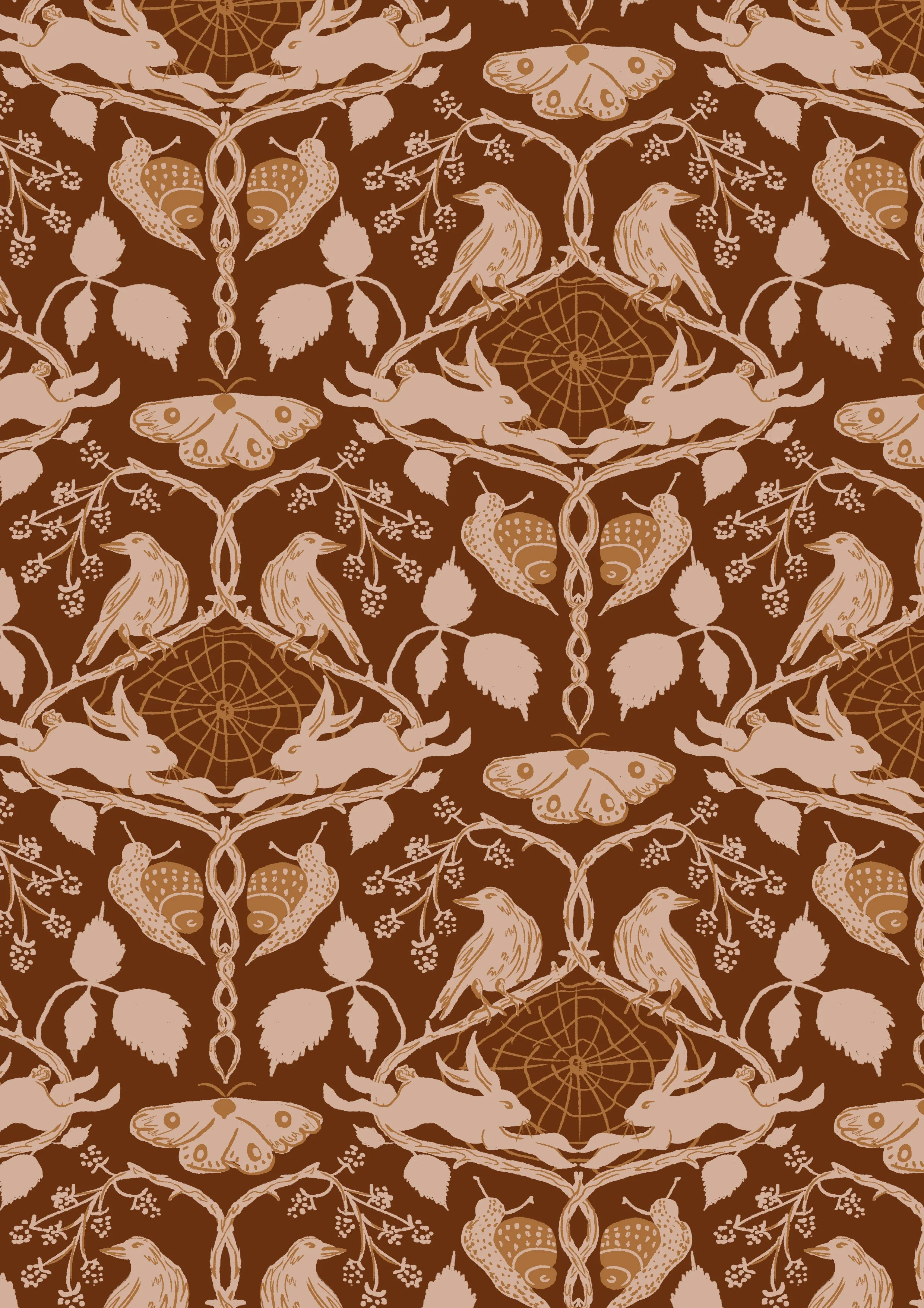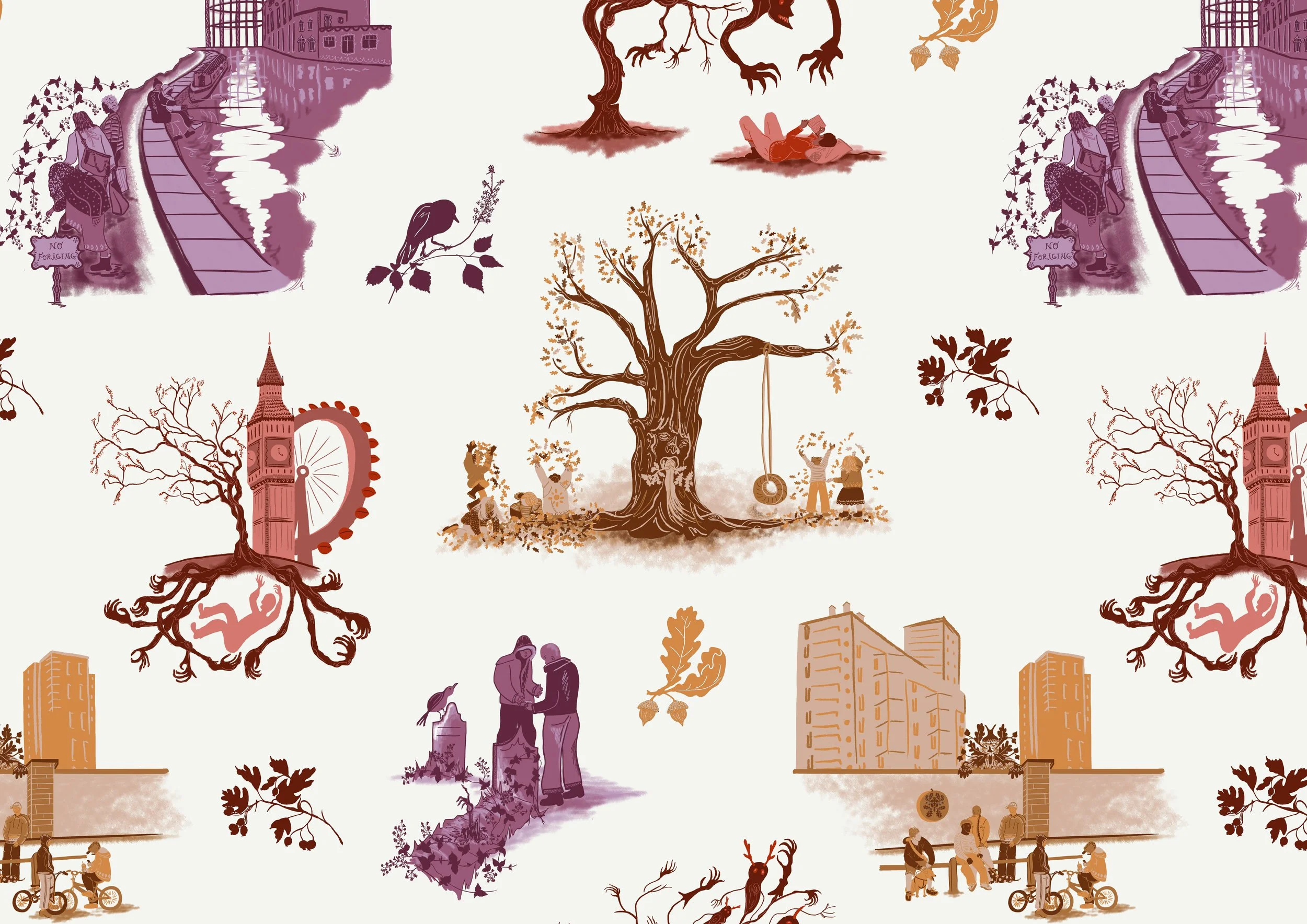 My practice encourages contemporary audiences to learn about British folklore and bring the lessons from this folklore into their lives. As part of this I have designed repeat prints for homeware, focusing on elements from folk stories and folk art. The muted colour scheme and natural scenes will bring a sense of this folklore and heritage into people’s homes.