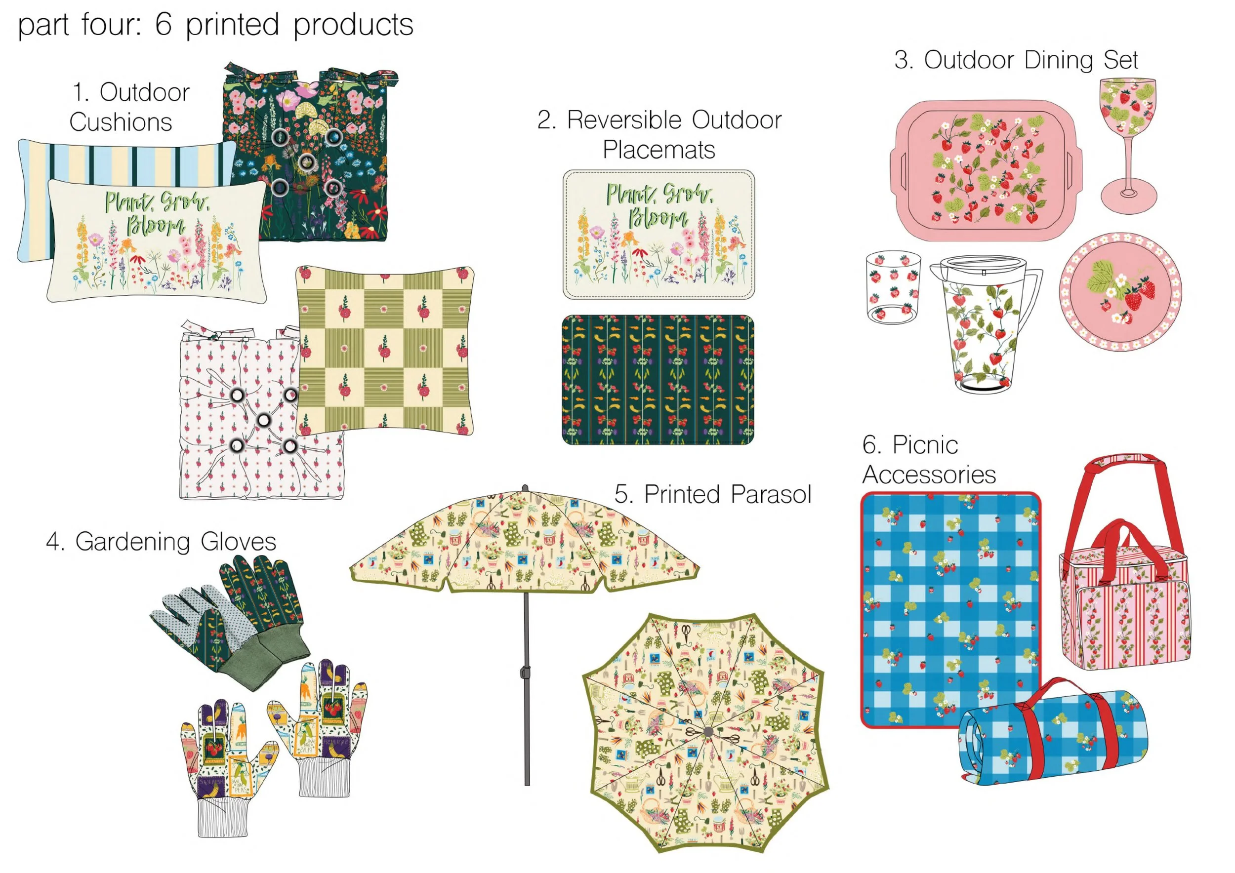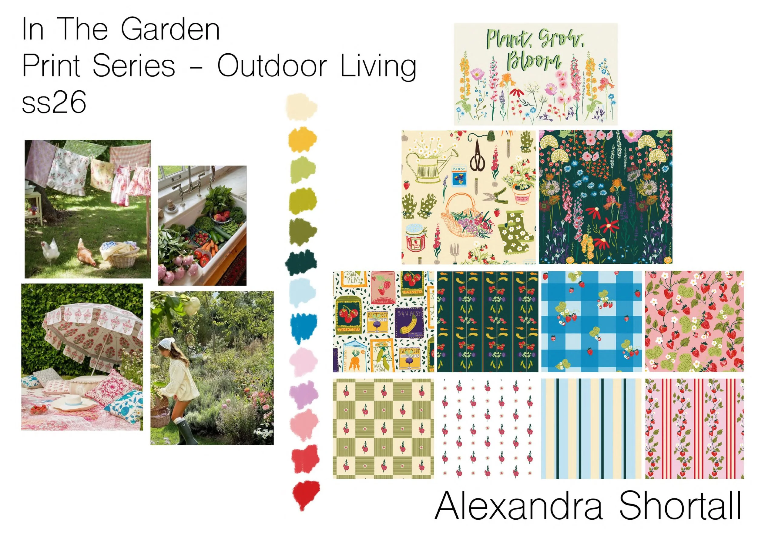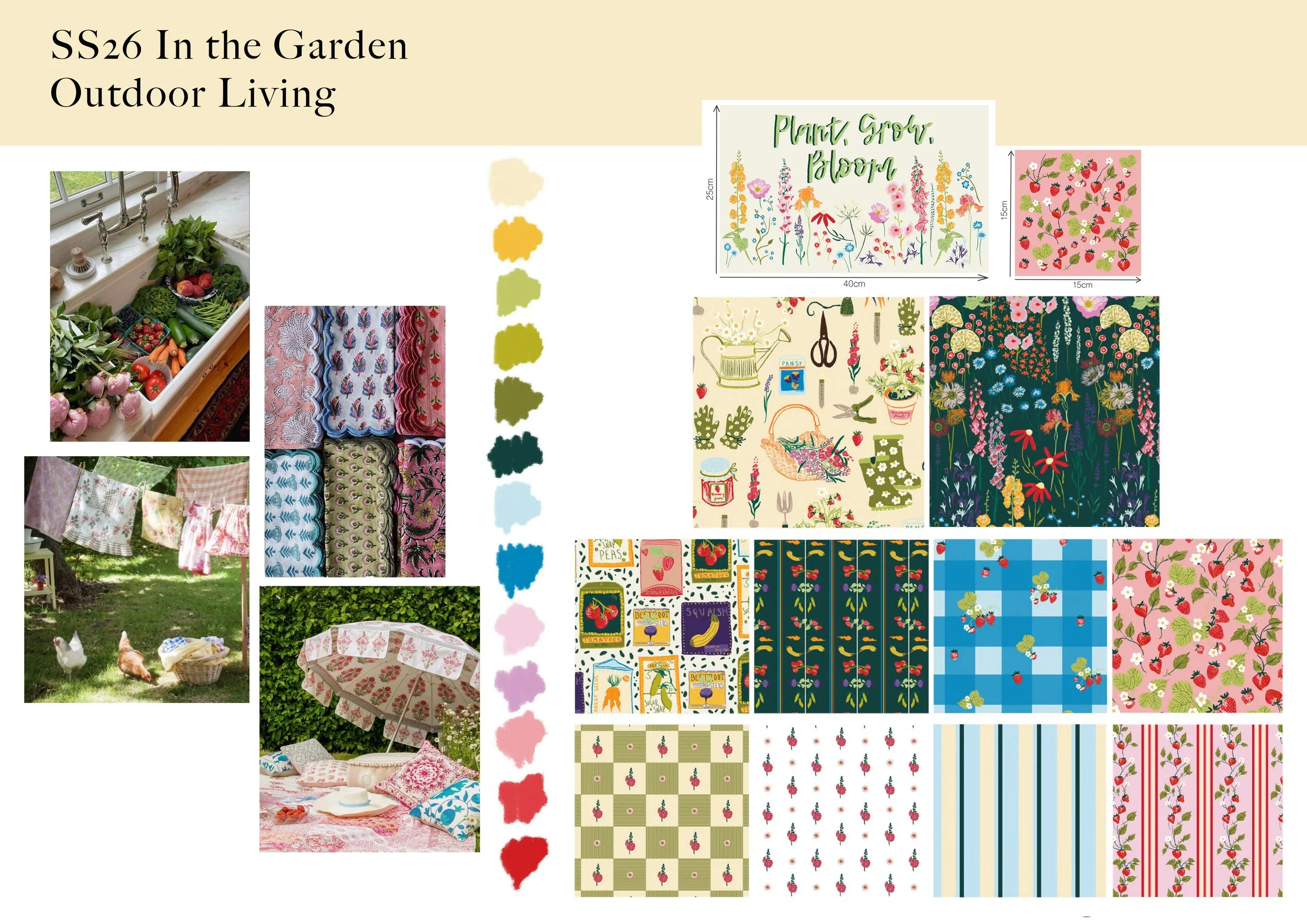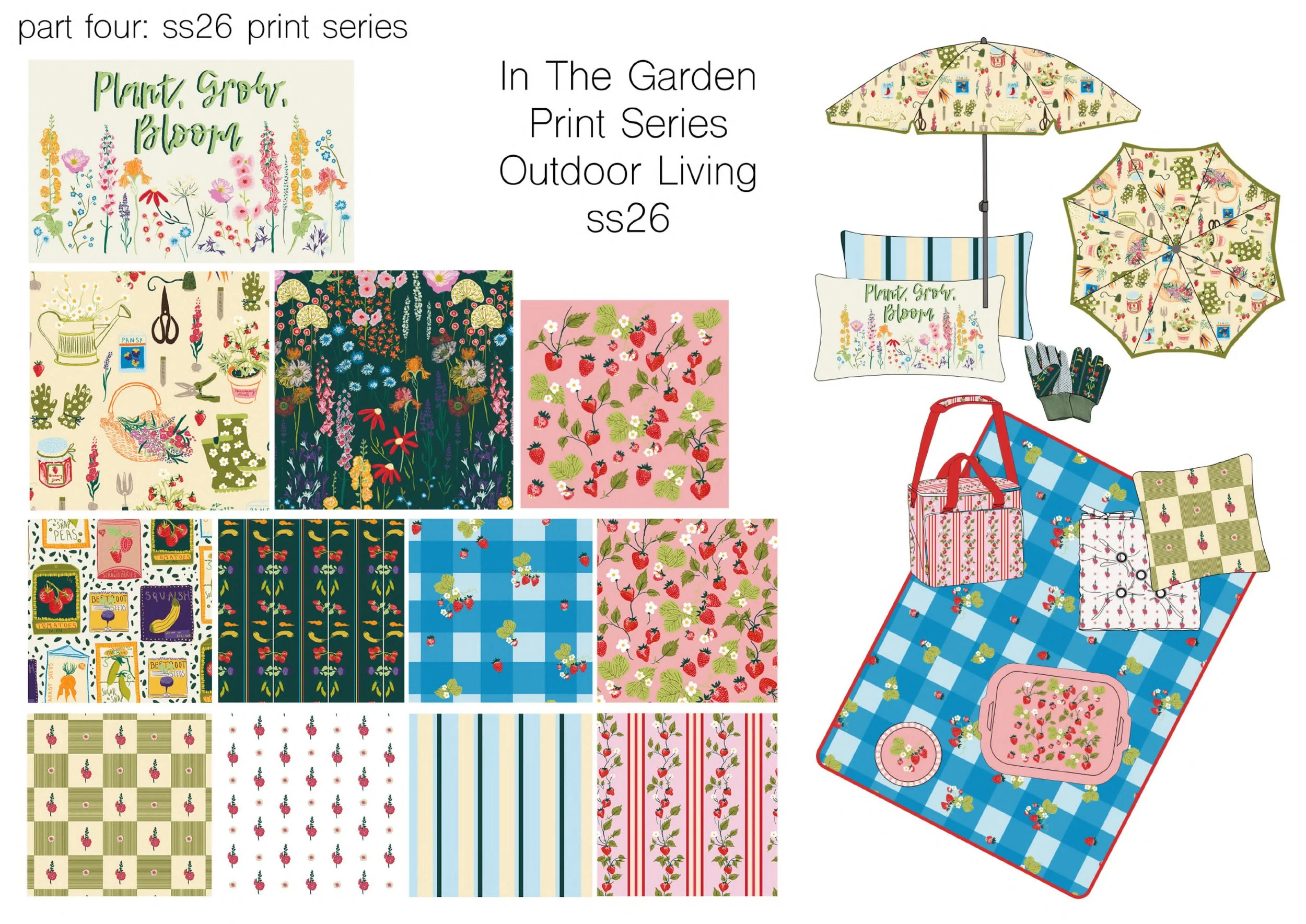 ‘In the Garden’ is a print collection I designed for the outdoor living market. This ss26 collection is inspired by the English country cottage garden and a very British Summertime.